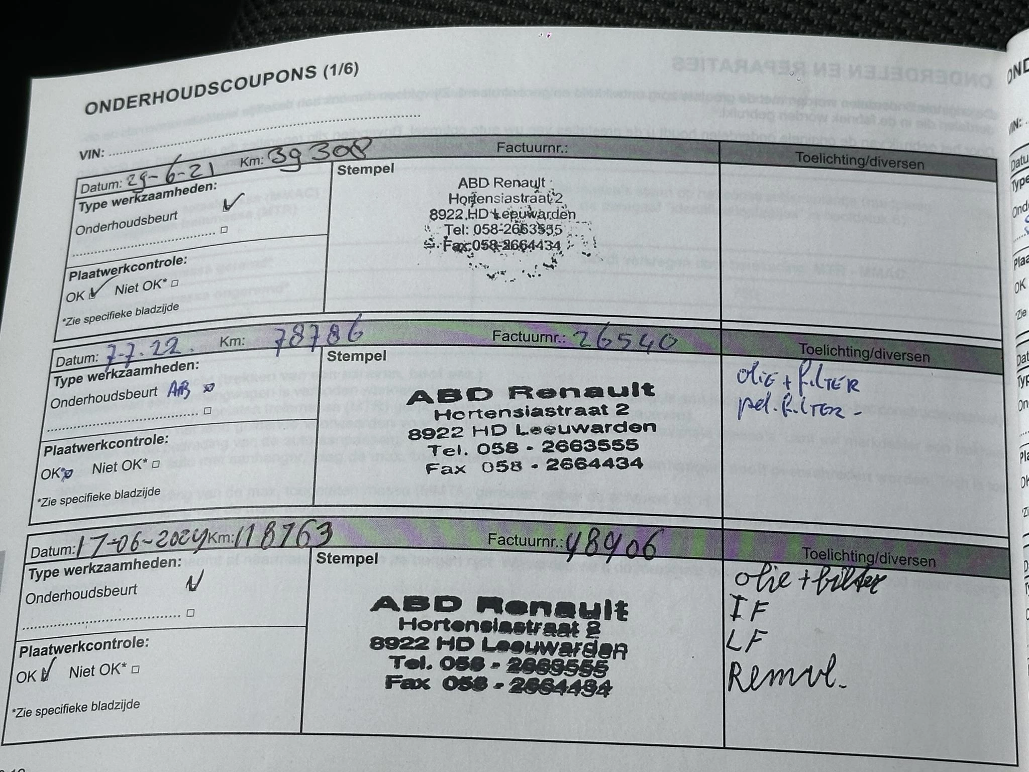 Onderhoud, historie en staat