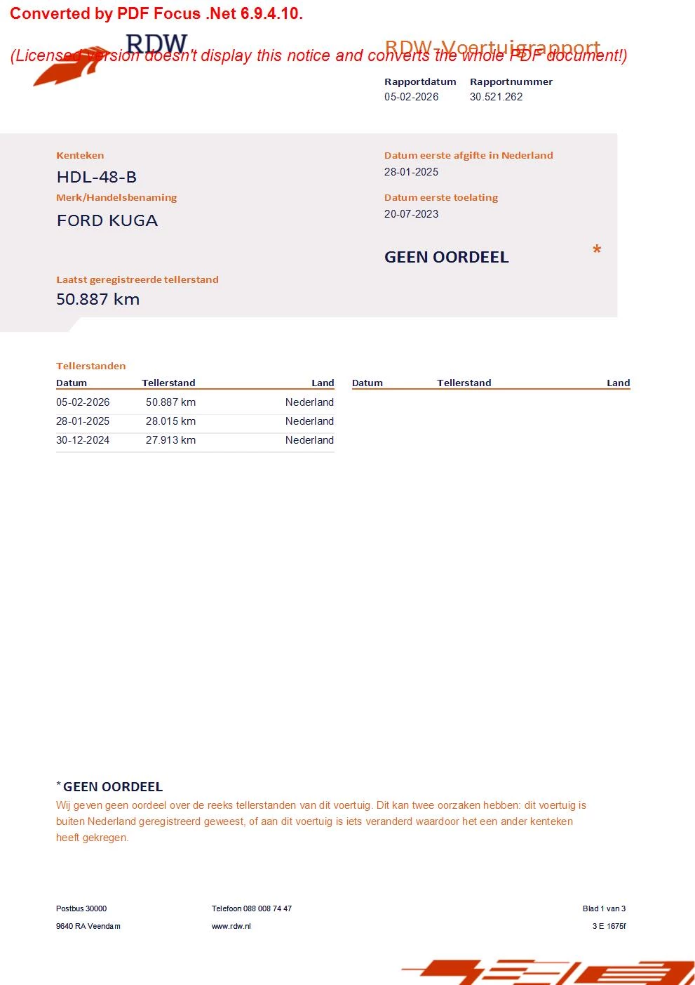 RDW Tellerrapport asd