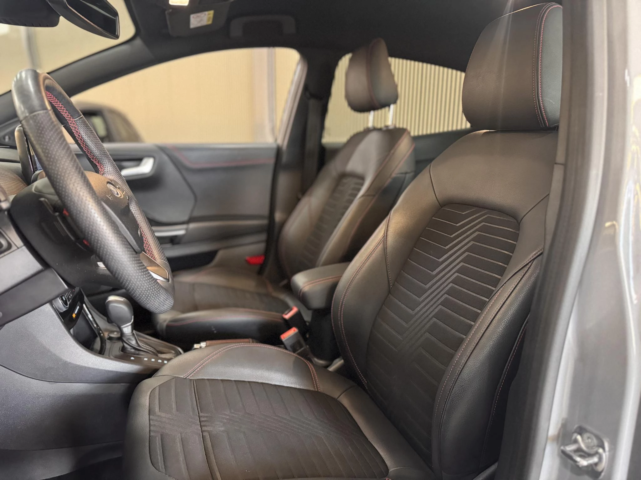 Zwart half Leder met rode stiksels