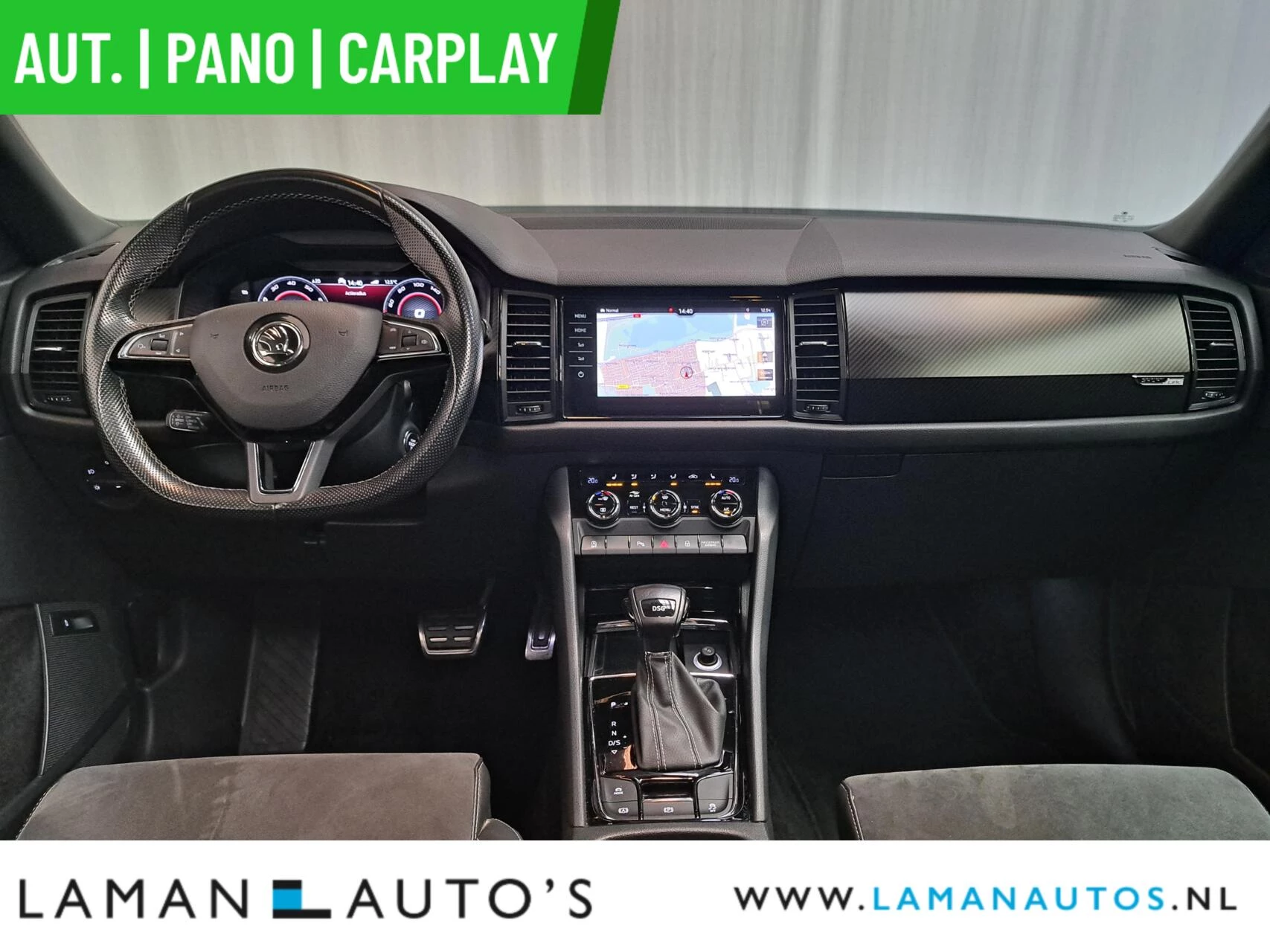1.5 TSI Sportline Business 1.5 TSI 150pk DSG Sportline Business Aut. | Pano Open Dak Virtual Leder/Alcantara CarPlay Canton 20" Vega LMV ECC Navi LED ACC Camera Trekhaak Side Assist Metallic | Voorschoten
